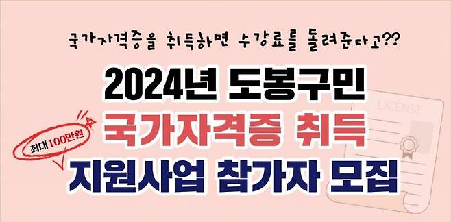 도봉구, 국가자격증 취득 시 수강료 등 최대 100만원 지원