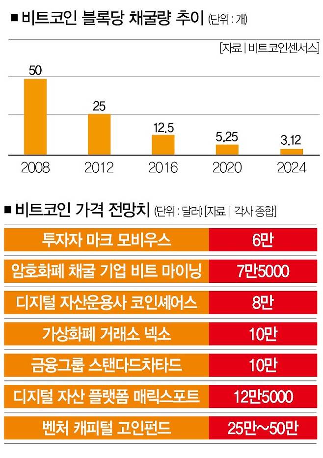 둘째는 60여일 앞으로 다가온 비트코인의 반감기다. 전체 발행량이 2100만개로 제한된 비트코인은 4년마다 채굴로 얻을 수 있는 보상이 절반으로 줄어든다. 앞선 2012년과 2016년, 2020년 세차례의 반감기를 지났고, 올해 4월 22일 4번째 반감기를 앞두고 있다. 반감기엔 채굴을 통해 시장에 공급하는 비트코인의 물량이 줄어 희소성이 커진다. 비트코인 가격이 오를 것이란 전망에 힘이 실리는 이유다.