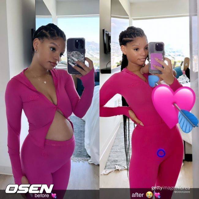 [OSEN=김보라 기자] 미혼인 가수 할리 베일리가 출산 전후 사진을 비교했다.