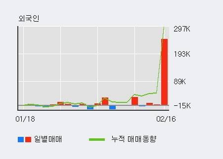 지난 한달을 기준으로 보면 외국인이 29.2만주를 순매수했고, 기관도 22.7만주를 순매수했다. 반면 개인들은 49.8만주를 순매도한 것으로 나타났다. 같은 기간 이 종목의 거래비중은 외국인과 개인이 각각 17.9%, 76.7%로 비중이 높다.