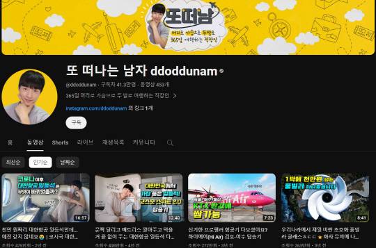 '또 떠나는 남자' 구독자 41만명 '1위'