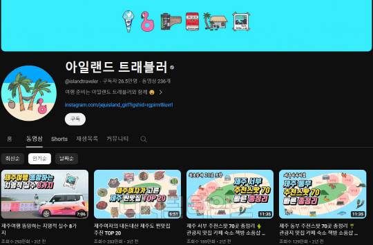 2위에 오른 '아일랜드 트래블러'는 구독자 26만 명, 누적 조회 수 3500만 회를 보유한 채널이다. 여행에 일가견이 있는 부부 유튜버가 운영하는 이 채널은 제주도, 몰디브, 베트남 등 국내외 대표 휴양지의 숙박 시설과 맛집 리뷰 콘텐츠를 주로 선보인다. 신상 리조트뿐 아니라 가성비 호텔, 독채 펜션 등 다양한 종류의 숙박 시설을 폭넓게 아우르며 '찐' 체험기를 전해 좋은 반응을 얻고 있다. 최고 인기 콘텐츠는 '제주도 가성비 호텔 추천' 시리즈로, 관련 영상들이 수십만 회의 조회 수를 올리고 있다. 해외 숙박 시설을 리뷰한 '베트남 푸꾸옥 신상 리조트 7곳', '방콕 호캉스 여행 추천 호텔 15곳' 등도 구독자 수를 훌쩍 뛰어넘는 조회 수를 기록 중이다.