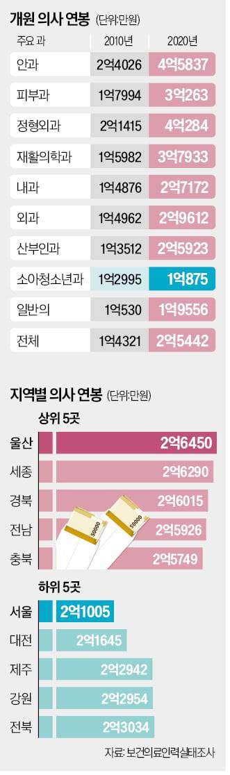 안과 의사 10년새 연봉 2억 뛸 때…소아과는 되레 2천만원 줄어
