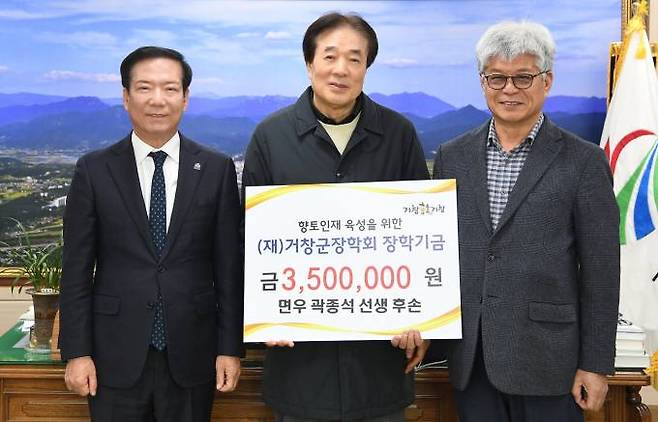 면우 곽종석 선생 후손 7명이 지역 우수 인재 육성을 위한 마음을 담아 (재)거창군장학회에 장학금 350만원을 기탁했다.