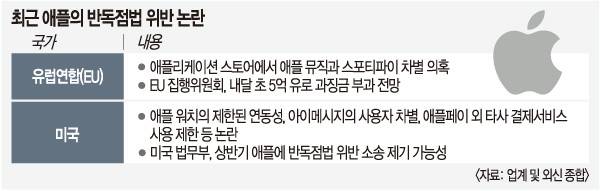 업계 한 관계자는 19일 “과거 애플의 독자적 생태계는 수익을 늘리는 방법으로 여겨졌지만, 최근에는 리스크로 작용하면서 완전히 다른 국면을 맞았다”고 말했다. 유럽에선 애플의 반독점법 위반 행위에 대한 엄격한 규제가 추진되는 반면 국내 규제는 소극적이라는 지적도 있다.