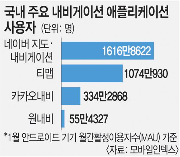 현재 티맵의 경쟁 앱인 네이버 지도·내비게이션 월간 이용자 수는 2500만명으로, 시장 점유율이 가장 높은 것으로 평가된다. 네이버는 UBI 특약을 도입하는 방안도 추진 중이다. 대중교통, 주변 검색 서비스 등까지 갖춘 네이버 앱 장점에 안전점수 보험특약 서비스까지 추가될 경우 티맵 점유율은 더 떨어질 가능성이 있다.