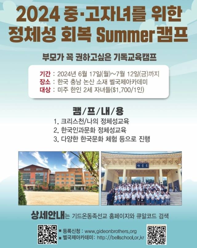 2024 중·고 자녀 위한 ‘정체성 회복’ 여름 캠프