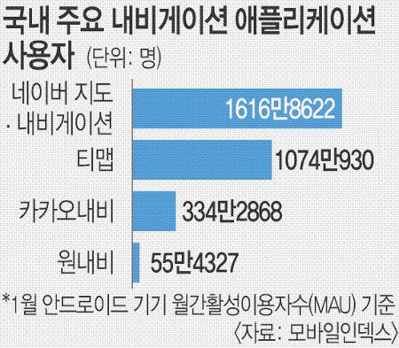 현재 티맵의 경쟁 앱인 네이버 지도·내비게이션 월간 이용자 수는 2500만명으로, 시장 점유율이 가장 높은 것으로 평가된다. 네이버는 이 앱을 쓰는 이용자들을 위해 UBI 특약을 도입하는 방안을 추진 중이다. 대중교통, 주변 검색 서비스 등까지 갖춘 네이버 앱 장점에 안전점수 보험특약 서비스까지 추가될 경우 티맵 점유율은 더 떨어질 가능성이 있다.