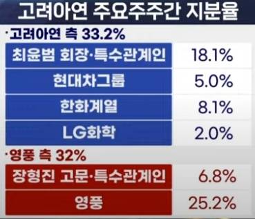고려아연은 70년 넘게 한 지붕 두 가족 식의 경영을 해 왔는데, 최기호 창업주의 손자 최윤범 회장 체제가 본격화 된 2020년대에 들어오면서 균열이 관측됐습니다. 그룹 계열분리 가능성이나 고려아연 측이 우호지분을 늘리는 것을 보고 말들이 무성했지요.