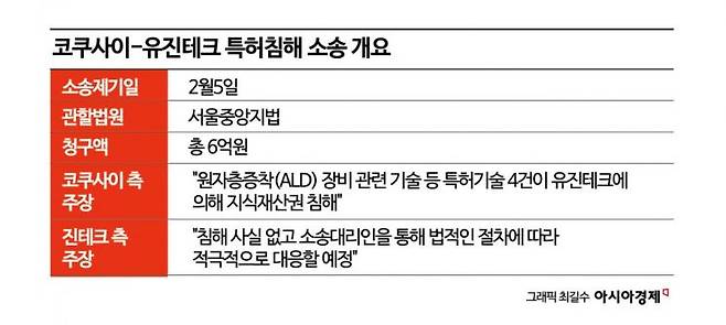 코쿠사이는 손해배상액으로 총 6억원을 청구한 것으로 알려졌다. 회사 측은 "당초 원만한 해결을 위해 유진테크에 지식재산권 침해 사실을 알렸지만, 대화를 통한 합의에는 실패해 불가피하게 소송을 제기했다"고 밝혔다.