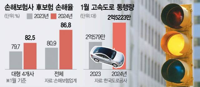 21일 손해보험 업계에 따르면 삼성화재(000810)·현대해상(001450)·KB손해보험·DB손해보험(005830) 등 국내 대형 손보사 4곳의 지난달 자동차보험 평균 손해율은 82.5%로 지난해 1월(79.7%)보다 2.8%포인트 상승했다.