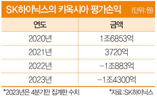 키옥시아 부진은 SK하이닉스 실적에 큰 부담을 준다. 키옥시아 실적 저조로 지난해 4분기 SK하이닉스의 키옥시아 투자자산 평가손실은 1조4300억원에 달했다. 이 기간 SK하이닉스 전체 영업외손실(-2조2200억원)의 절반 이상이 키옥시아 투자자산 평가손실에서 초래됐다. SK하이닉스는 2022년에도 낸드 업황 침체에 따른 키옥시아 실적 악화로 1조883억원의 평가손실을 냈다. 투자 지분 재평가는 실제 현금 유출입과는 무관하지만 실적에 부담으로 작용한다. 키옥시아 투자 자산 평가손실이 영업외 일회성 손실로 반영되면서 SK하이닉스는 2023년 4분기까지 5개 분기 연속 순손실을 이어갔다.