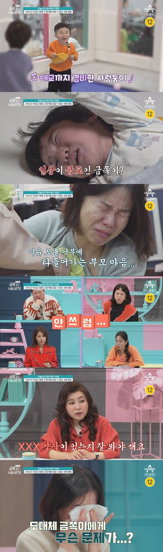 오는 23(저녁 8시 10채널A ‘요즘 육아 - 금쪽같은 내새끼에서는 ‘눈뜨면 무섭다 말하고 음식을 삼킬 수 없는 4세 아들’ 사연이 공개된다.