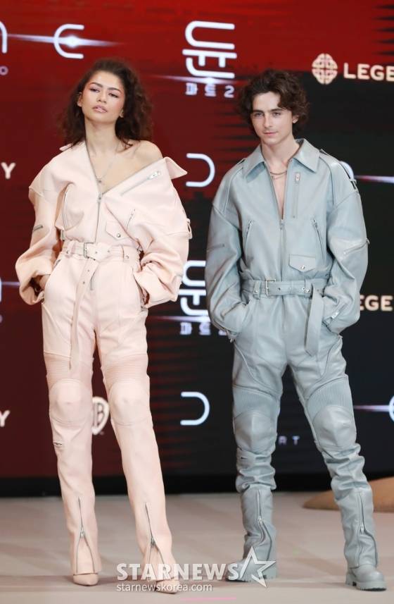 티모시 샬라메와 젠데이아 콜먼은 21일 진행된 영화 '듄: 파트2'(이하 '듄2')의 내한 프레스 컨퍼런스에 드니 빌뇌브 감독, 배우 오스틴 버틀러, 스텔란 스카스가드 등과 함께 참석했다.