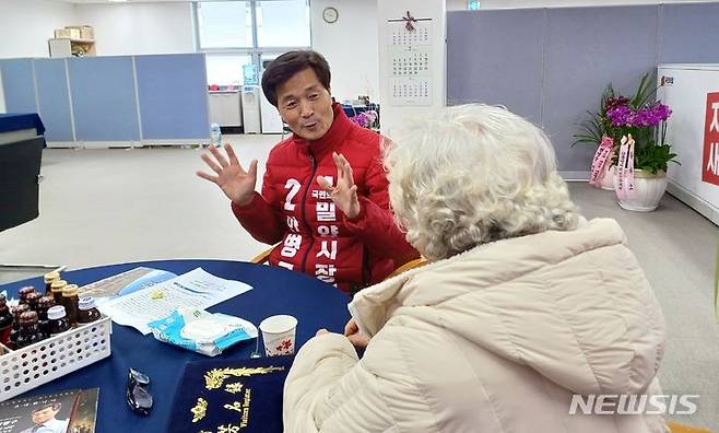 의견 청취하는 안병구 밀양시장 예비후보