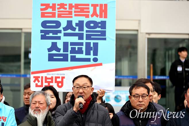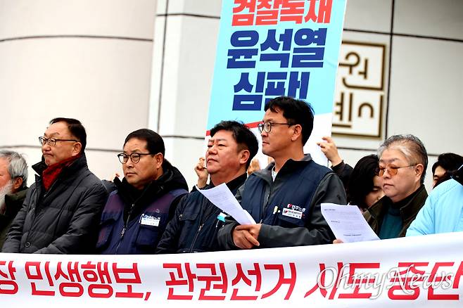"국정 기조 전면 전환, 위장 민생행보, 관권선거 시도 중단. '입틀막' 대통령 윤석열을 거부한다."