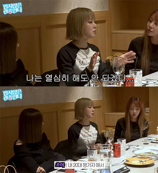 이에 초아는 "제가 모니터를 많이 한다. 선배님들이 나오는 걸 보고 저를 비교하니까 '나는 더 열심히 해도 스펙 자체가 안되겠다' 생각했다"면서 "어차피 최고가 못 될 바에는 내 20대를 챙기자 해서 떠났다"고 탈퇴 이유를 밝혔다.