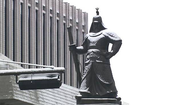광화문광장의 이순신 장군 어깨 위에도 흰 눈이 소복이 쌓였습니다.