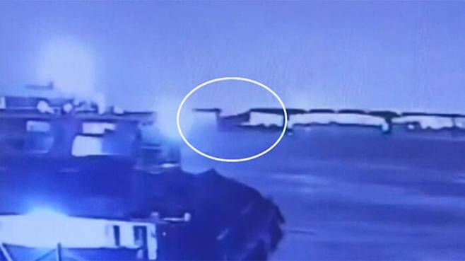 [중국 관영 신화사 보도 : 두 대는 물에 빠졌고 석 대는 화물선 위로 떨어졌습니다.]