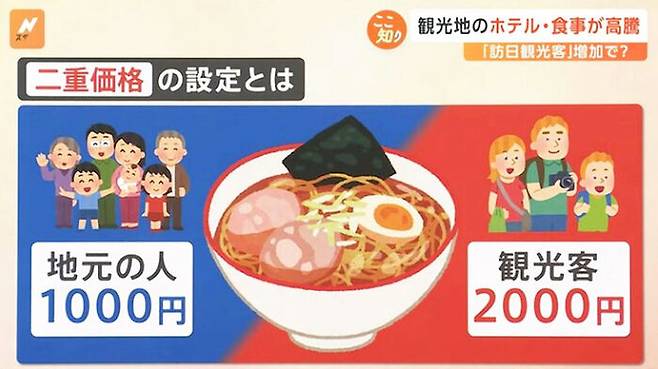외국인들은 괜찮지만, 정작 일본에서 돈을 벌고 생활하는 현지인들은 부담이 점점 커진다, 그러니까 아예 일본인과 외국인 가격을 따로 책정하는 이중가격을 도입하자는 목소리까지 나오고 있는 겁니다.