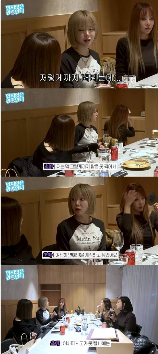 초아는 "떨어졌다기보다는 그때 여전히 연예인을 계속하고 싶었다"라며 AOA 탈퇴 당시를 떠올렸다. 채리나는 "그때 느낌은 네가 그만하고 싶어서 나가느 느낌이었다"라고, 나르샤는 "대중들도 그렇게 생각할 거다. 초아가 하기 싫어서 나갔다고 생각할 것"이라고 말했다.