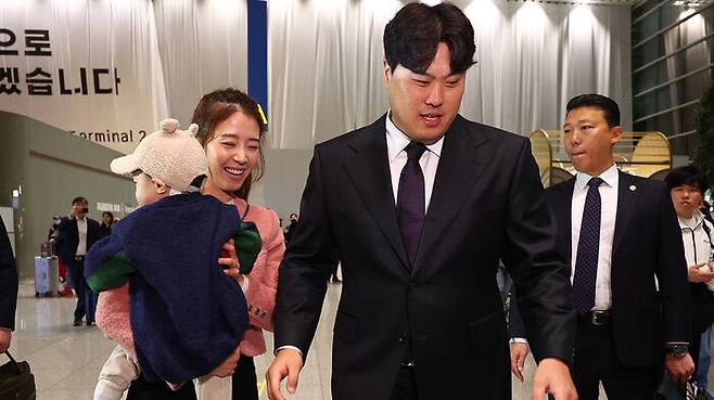 오늘 배지현 씨와 자녀, 그리고 류현진의 아버지 류재천 씨는 이른 시간임에도 직접 공항을 찾아 새로운 출발을 앞둔 류현진을 배웅했습니다.
