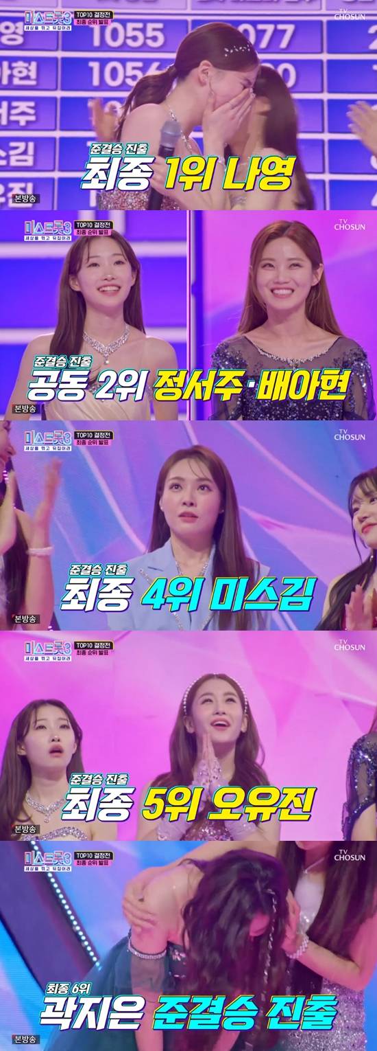 한편 4위는 미스김, 5위는 오유진, 6위는 곽지은, 7위는 김소연, 8위는 윤서령, 9위는 빈예서, 10위는 정슬이었다.