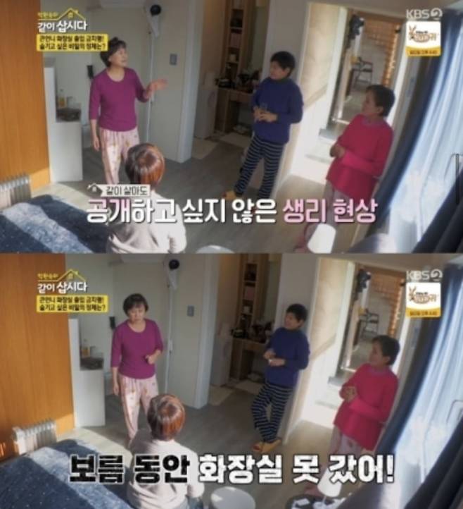 22일 방송된 KBS 2TV '박원숙의 같이 삽시다 시즌3'에서는 아침부터 만실인 화장실에 공실인 화장실을 찾아 안문숙이 큰언니 박원숙의 방을 습격했다.
