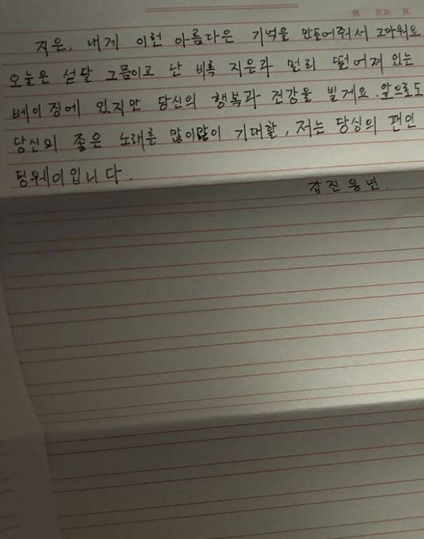 "지은, 그거 알아요?" 아이유가 공개한 탕웨이 한글 손 편지