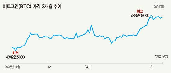 비트코인 현물 ETF가 ‘매수 우위’로 전환되며 비트코인 랠리가 이어지고 있다. ETF 승인 직후 오히려 추락했던 비트코인 가격이 1월 말 이후 다시 우상향곡선을 그리기 시작했다. 차익 실현을 위한 기관 매도세가 주춤하면서 비트코인 ETF는 순매수로 돌아섰다. ETF 호조와 함께 조만간 비트코인이 전고점을 돌파할 수 있다는 장밋빛 전망이 나온다.