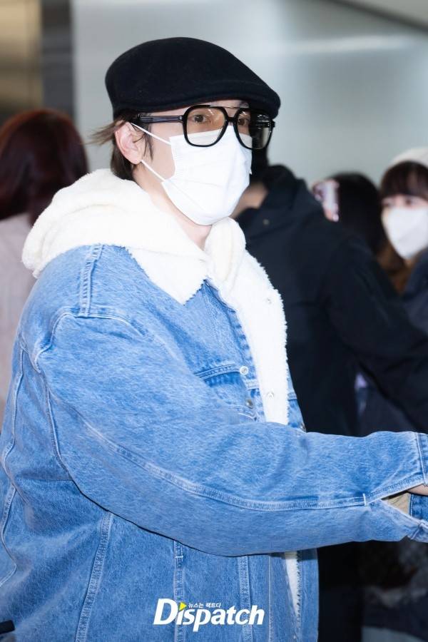동해는 청재킷과 헌팅캡으로 멋을 냈다. 잘생긴 비주얼이 돋보였다.