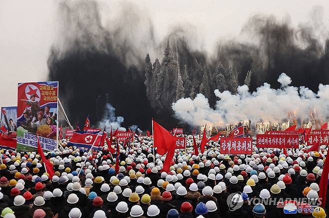 (평양 조선중앙통신=연합뉴스) 북한 김정은 국무위원장이 참석한 가운데 평양시 1만세대 살림집건설 사업인 3단계 건설착공식이 23일에 진행되었다고 조선중앙통신이 24일 보도했다.2024.2.24
