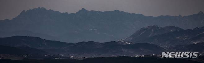 [김포=뉴시스] 정병혁 기자 = 정월대보름인 24일 경기 김포시 애기봉평화생태공원에서 북한 개성 송악산이 보이고 있다. 2024.02.24. jhope@newsis.com
