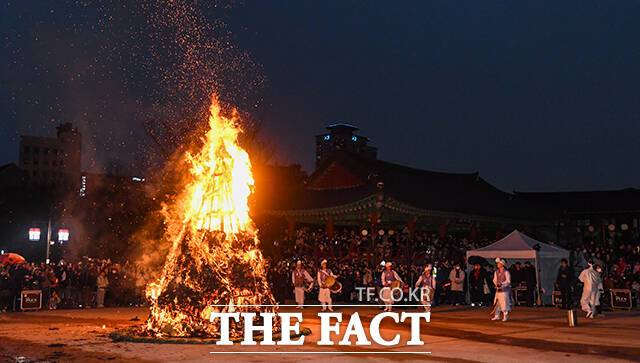 [더팩트ㅣ서예원 기자] 한 해의 첫 보름달이 뜨는 정월대보름인 24일 오후 서울 중구 남산골한옥마을에서 '남산골 세시울림 휘영-청' 행사가 열린 가운데 액운을 태우는 달집태우기 행사가 진행되고 있다.