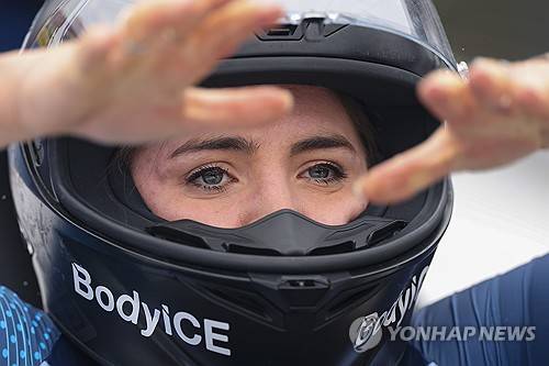 epa11177126 Breeana Walker of Australia reacts after the second run of the women's mono bobsleigh World Championship in Winterberg, Germany, 24 February 2024. EPA/CHRISTOPHER NEUNDORF
