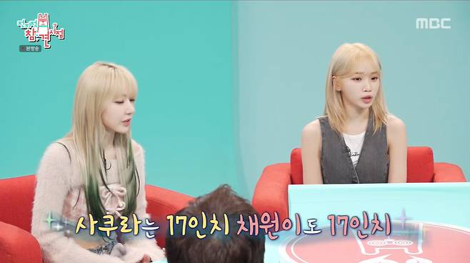 사쿠라와 김채원은 허리 사이즈를 묻는 질문에 "최근에 쟀는데 17인치가 나왔다"고 입을 모았다.