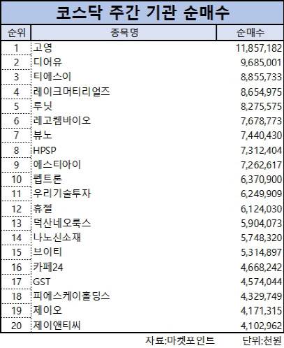코스닥 주간 기관 순매수 1위 ‘고영’