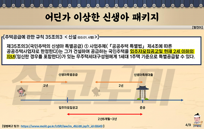 정부의 저출산 대책 패키지가 다음 달부터 본격적으로 가동됩니다. 연초 신생아 특례대출이 출시된 데 이어 공공분양 아파트의 신생아 특별공급이 신설공급이 신설된다는 점인데요. 자세히 뜯어보면 두 정책이 서로 호응하지 않는다는 문제가 있습니다.