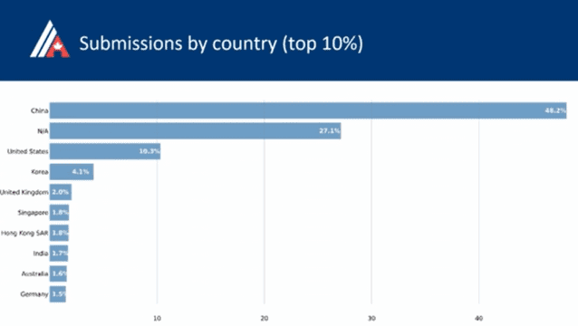 행사 주최측에 따르면, 올해 제출된 논문은 중국이 48.2%로 1위, 혼합국(두 나라 이상 공저 논문)이 27.1%로 2위, 미국이 10.3%로 3위를 보였다. 이어 영국(2.0%), 싱가포르(1.8%), 홍콩(1.8%), 인도(1.71%), 호주(1.6%), 독일(1.5%)이 5~10위를 기록했다. 미국인공지능학회로도 불리는 AAAI는 1979년 설립됐다. IJCAI(International Joint Conferences on Artificial Intelligence), ECAI(European Conference on Artificial Intelligence)와 같이 AI를 대표하는 세계적 학회로 꼽힌다.