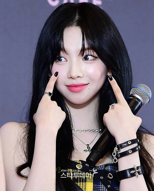 자율 포즈에서 카리나는 멤버들과 약속이라도 한 듯, 똑같은 ‘볼찍’ 포즈에 깜짝 놀라는 귀여운 모습이 포착되기도 했다.
