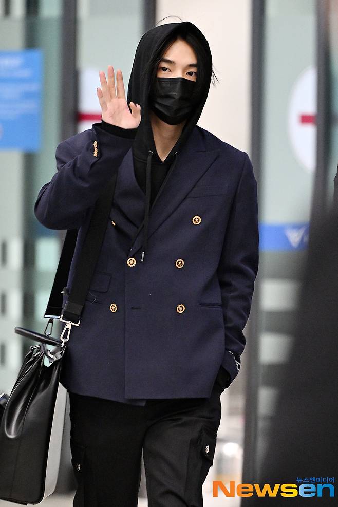스트레이키즈(STRAYKIDS) 멤버 현진(HyunJin)이 2월 25일 오후 인천 중구 운서동 인천국제공항 제 1여객터미널을 통해 밀라노 패션위크 참석을 마치고 이탈리아 밀라노에서 입국하고 있다.