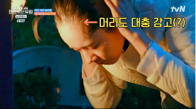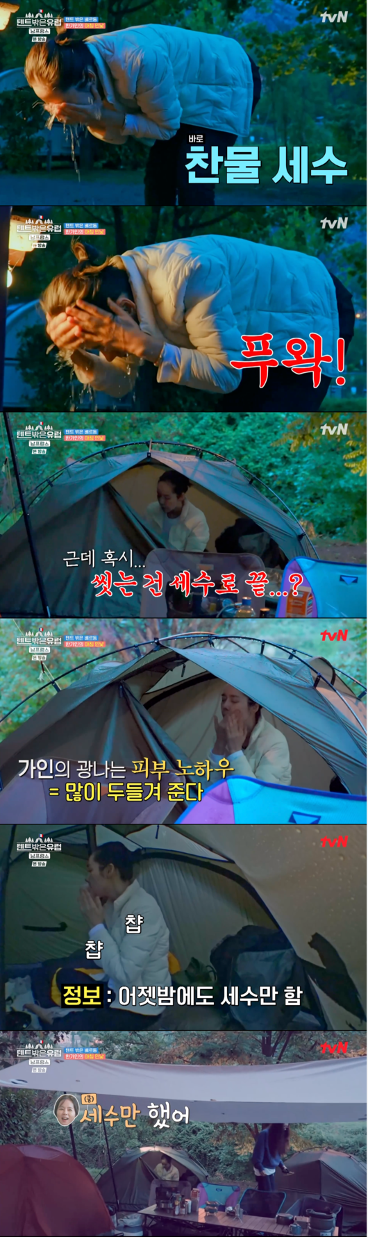 '텐트 밖은 유럽 - 남프랑스 편' 한가인이 찬물로 세수를 하는 쿨한 모습을 보였다.