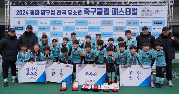 [풋볼리스트] 2024 평화 양구컵 전국 유소년 축구 페스티벌이 강원특별자치도 양구군에 위치한 양구종합운동장(천연잔디)에서 성료했다. 스포츠 메카 도시 청춘 양구군(서흥원 군수)은 SH스포츠에이전시(문성환 대표)와 함께 지난 수년간 다양한 형태의 축구 대회의 개최지로 각광을 받아왔다. 사진은 대회 2일차 제주바모스FC.