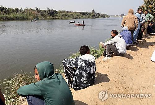 epa11180379 Egyptians look on as rescue personnel conduct a search operation on the river Nile for possible victims after a ferry capsized, in Niklah village, Giza, Egypt, 25 February 2024. At least three people died and four others were hospitalized after a ferry transporting workers capsized in the river Nile, according to the Egyptian Ministry of Health statement, as search operations for missing victims still ongoing. EPA/KHALED ELFIQI