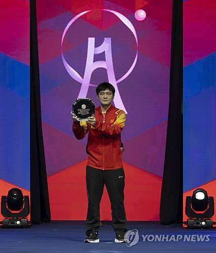 epa11180450 Fan Zhendong of China poses with the Victor Barna award of the 2024 ITTF World Team Table Tennis Championships Finals at Busan Exhibition and Convention Centre in Busan, South Korea, 25 February 2024. EPA/JEON HEON-KYUN
