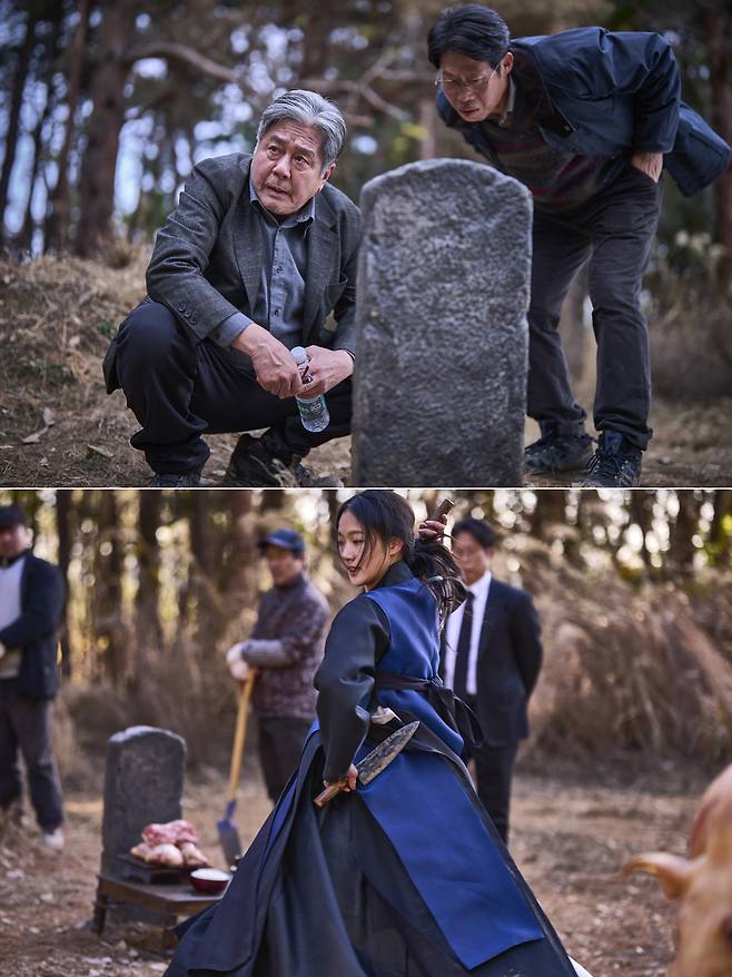 특히 장재현 감독은 '파묘'를 통해 오직 극장에서만 느낄 수 있는 체험적인 영화를 선보여 눈길을 끌었다. 이를 위해 전국 팔도를 누비며 1200평에 달하는 오픈 세트를 구현, 2m 넘게 흙을 쌓아 올리고 50그루의 나무를 옮겨 심어 '파묘'만의 묘 터를 완성했다. 여기에 CG를 최소화한 실사 촬영을 진행하며 뚝심 있는 연출로 '장재현 유니버스'를 구축했다.