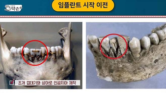 그렇다면 임플란트 시작 이전에는 어땠을까요? 놀랍게도 임플란트 전에도 상실된 치아를 수복하기 위한 끊임없는 시도가 있었다고 합니다.