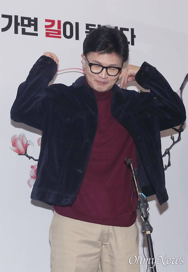 | ▲ 이어폰 빼는 한동훈 한동훈 국민의힘 비상대책위원장이 26일 오전 서울 여의도 중앙당사로 출근해 기자들의 질문을 받기 앞서 이어폰을 빼고 있다. |