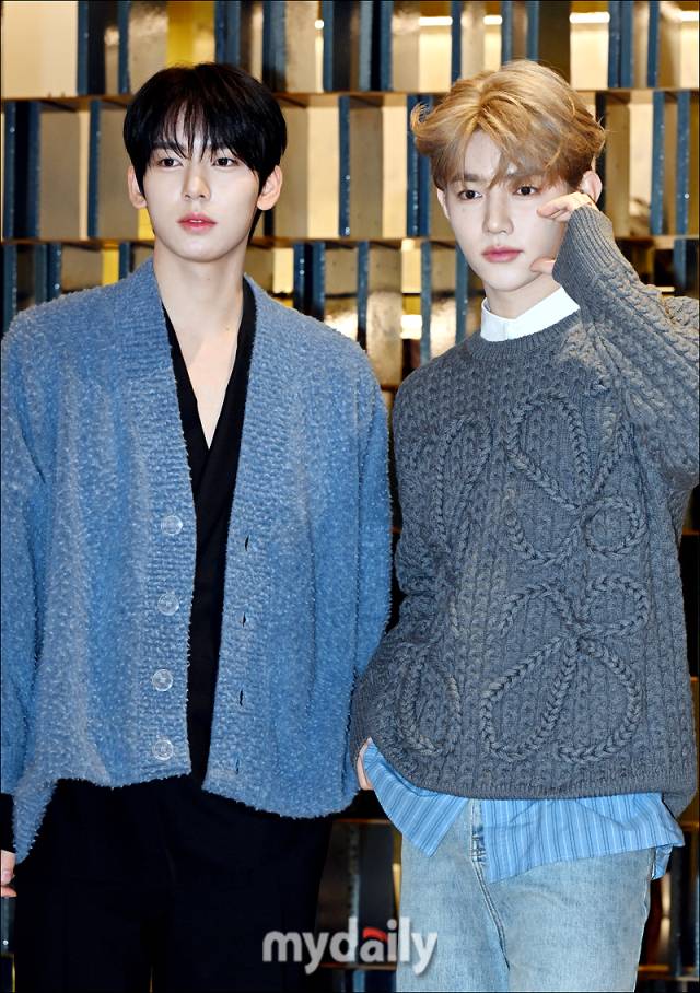 [마이데일리 = 송일섭 기자] 제로베이스원(ZB1) 한유진과 장하오가 26일 오후 서울 신세계백화점 강남점에서 진행된 로에베 남성 스토어 오픈행사에 참석해 포토타임을 갖고 있다.