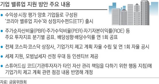 금융당국이 26일 발표한 기업 밸류업 지원 방안은 기업들의 자발적인 기업가치 제고 노력과 주주 환원 정책을 통해 만성적인 ‘코리아 디스카운트’(한국 증시 저평가)를 해결하겠다는 게 핵심 내용이다. 기업의 자발적 동참에 기댄 것이라 기업들의 호응 여부가 정책 성패를 좌우할 것으로 보인다.